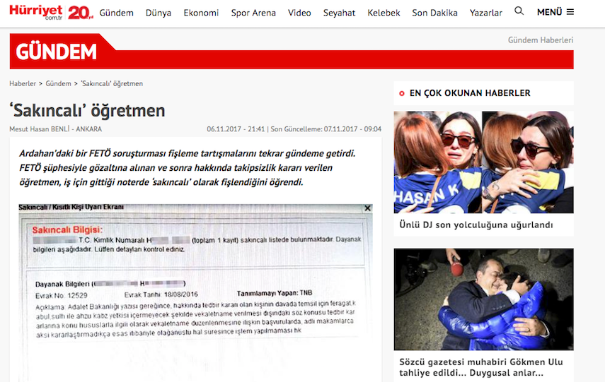 According to Hurriyet daily newspaper, H.A. was dismissed from job as a teacher over alleged ties to the Gulen movement like thousands of others.