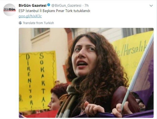 Pınar Türk, İstanbul district head for the Socialist Party of the Oppressed (ESP), has been put in pre-trial detention by an İstanbul court, the Birgün daily reported on Friday.
