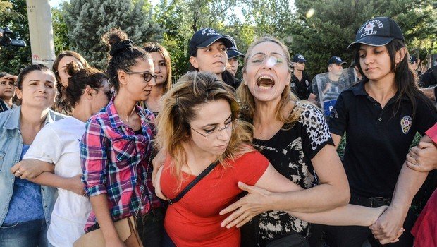 Teachers, blowing whistles and holding placards gathered at the main avenue of Diyarbakır’s Kayapınar district early on Saturday. Riot police used teargas to disperse the participants as they attempted to march through the main street of the district.