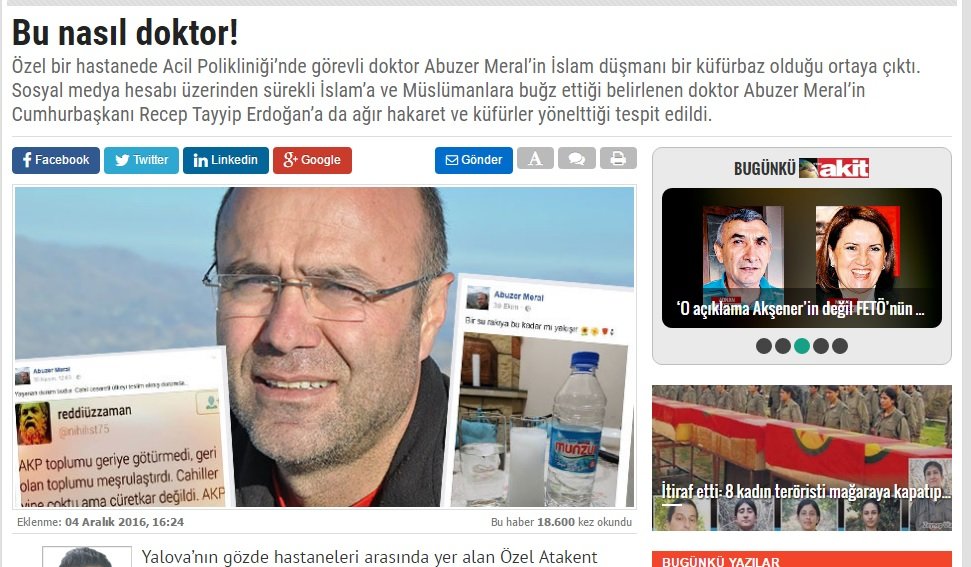 The article was released the same day when Turkish government detained 15 journalists and board members at Turkey’s leading secular newspaper, Cumhuriyet.