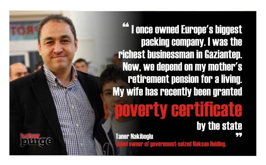 Taner Nakıboğlu, the owner of government-seized Naksan Holding, a Turkey-based packing company, said during a hearing on Tuesday that before his company was confiscated, he was the richest businessmen in Gaziantep province; yet his family now lives on the breadline.
